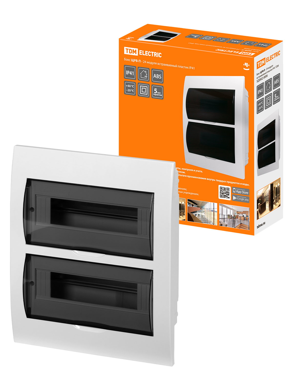 Бокс ЩРВ-П TDM Electric представляет собой пластиковый корпус встраиваемого типа, предназначенный для аккуратного размещения модульной аппаратуры защиты и управления (автоматические выключатели, УЗО, реле) внутри стен жилых, административных и офисных помещений. Он используется для создания скрытой электропроводки и обеспечения доступа к электросети. Корпус выполнен из качественного, ударопрочного и самозатухающего АБС-пластика, который не поддерживает горение и устойчив к УФ-излучению. Изделие оснащено DIN-рейкой, суппортом для клеммников N и PE, а также декоративной рамкой и дверцей с защелкой (прозрачной или непрозрачной), которая маскирует монтажные элементы и гармонично вписывается в интерьер. Степень защиты корпуса составляет IP40 или IP41, что гарантирует безопасность эксплуатации и защиту оборудования от пыли.