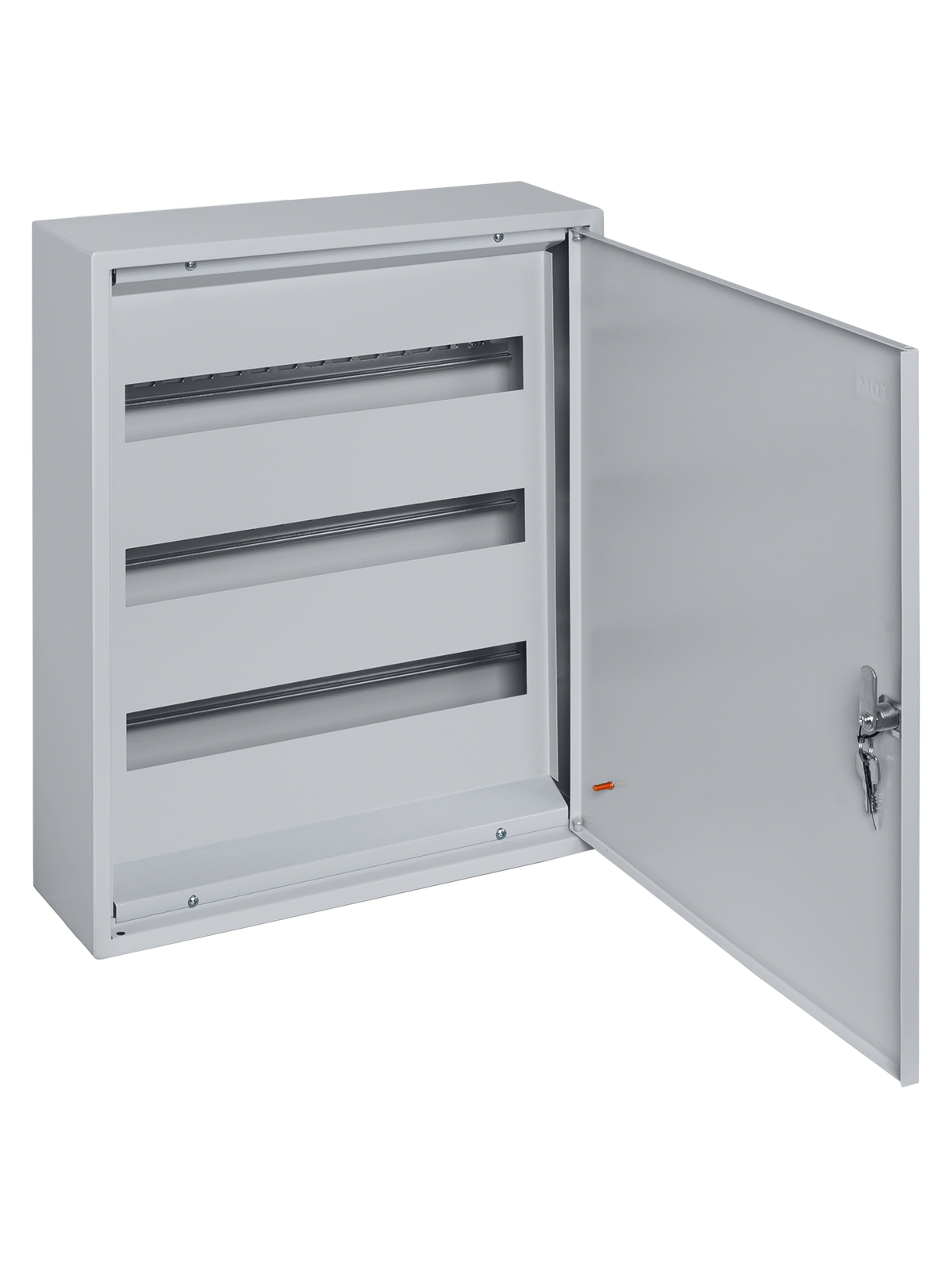 Корпус металлический ЩРН (щит распределительный навесной) TDM Electric предназначен для сборки распределительных электрощитов с использованием модульной аппаратуры и устанавливается непосредственно на поверхность стен внутри жилых, общественных и производственных помещений. Изделие изготавливается из прочной листовой стали с качественным порошковым покрытием, обеспечивающим надежную защиту от коррозии и эстетичный внешний вид в течение всего срока службы. Конструкция корпуса включает в себя DIN-рейки для быстрого монтажа оборудования, защитную фальш-панель (оперативную панель) и надежную дверцу с замком, ограничивающим доступ посторонних лиц к автоматике. Удобство ввода кабеля обеспечивается специальными отверстиями в нижней и верхней частях корпуса, а высокая жесткость конструкции и наличие заземляющих элементов гарантируют безопасность эксплуатации и простоту обслуживания электроустановок в 2025 году.