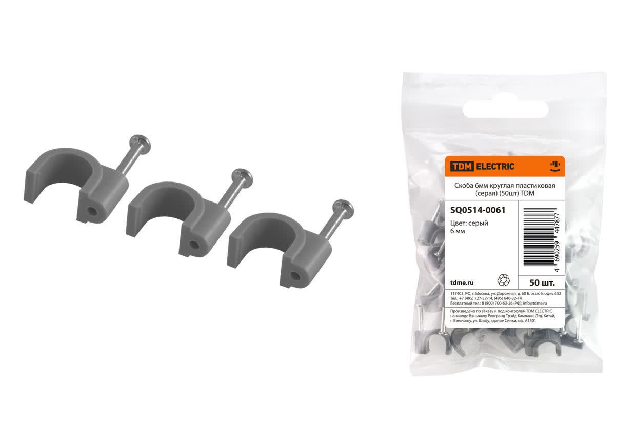 Скоба 6мм круглая пластиковая (серая) (50шт) TDM - СКЛАД13.РФ