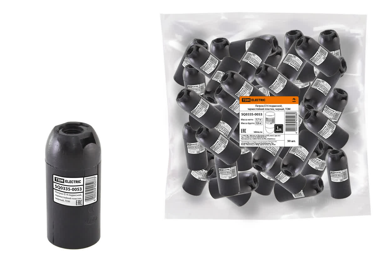 Подвесной патрон Е14, TDM SQ0335-0009 используется в качестве комплектующего элемента для бытовых и промышленных светильников. Изделие фиксирует лампу и подсоединяет ее к электрической сети. Корпус патрона изготовлен из термостойкого пластика, который выдерживает температурные перепады от -100 °С до +260 °С. Также подходит для больших статических и динамических нагрузок, может использоваться при большом трении и излучении.