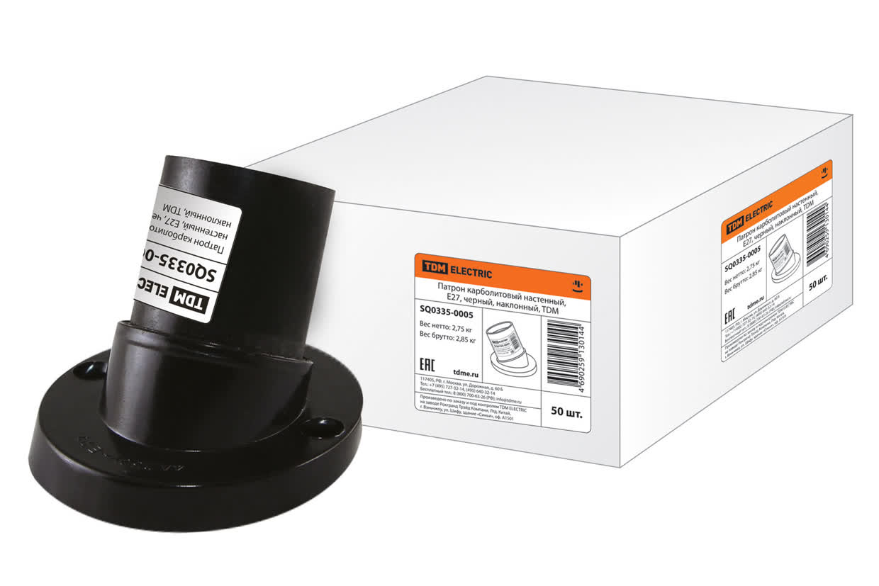 Наклонный карболитовый настенный патрон Е27, черный TDM ELECTRIC SQ0335-0005 используется для фиксации ламп и подведения их к электрической сети при подключении бытовых или промышленных источников освещения. Патрон имеет керамическую центральную вставку, которая обладает пожаробезопасными свойствами. Корпус патрона выполнен из электроизоляционного материала - карболита. Он так же обладает термоустройчивостью, не подвержен коррозии, не разрушается под действием агрессивных сред.