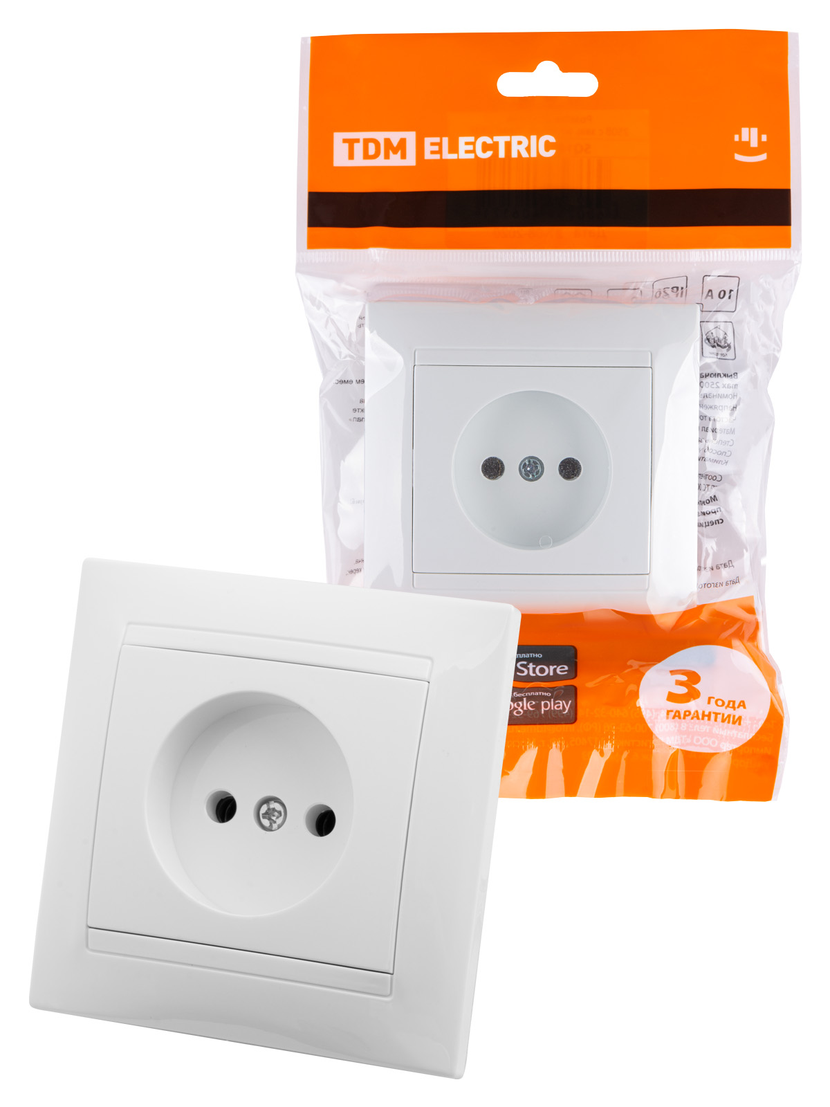 Розетка 2П 10А 250В белая "Лама" TDM