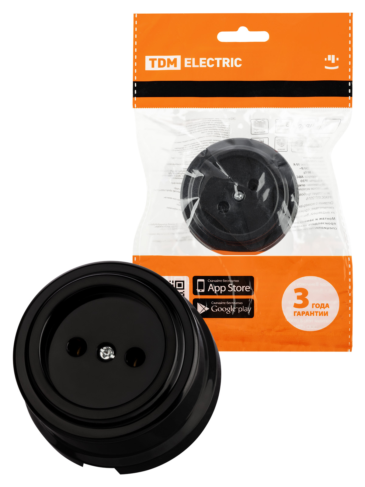 Розетка 2П 10А 250В черная «Виви» TDM - СКЛАД13.РФ