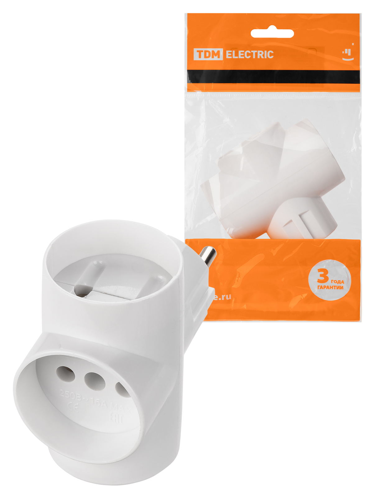 Тройник 3х2П 16А 250B белый TDM - СКЛАД13.РФ