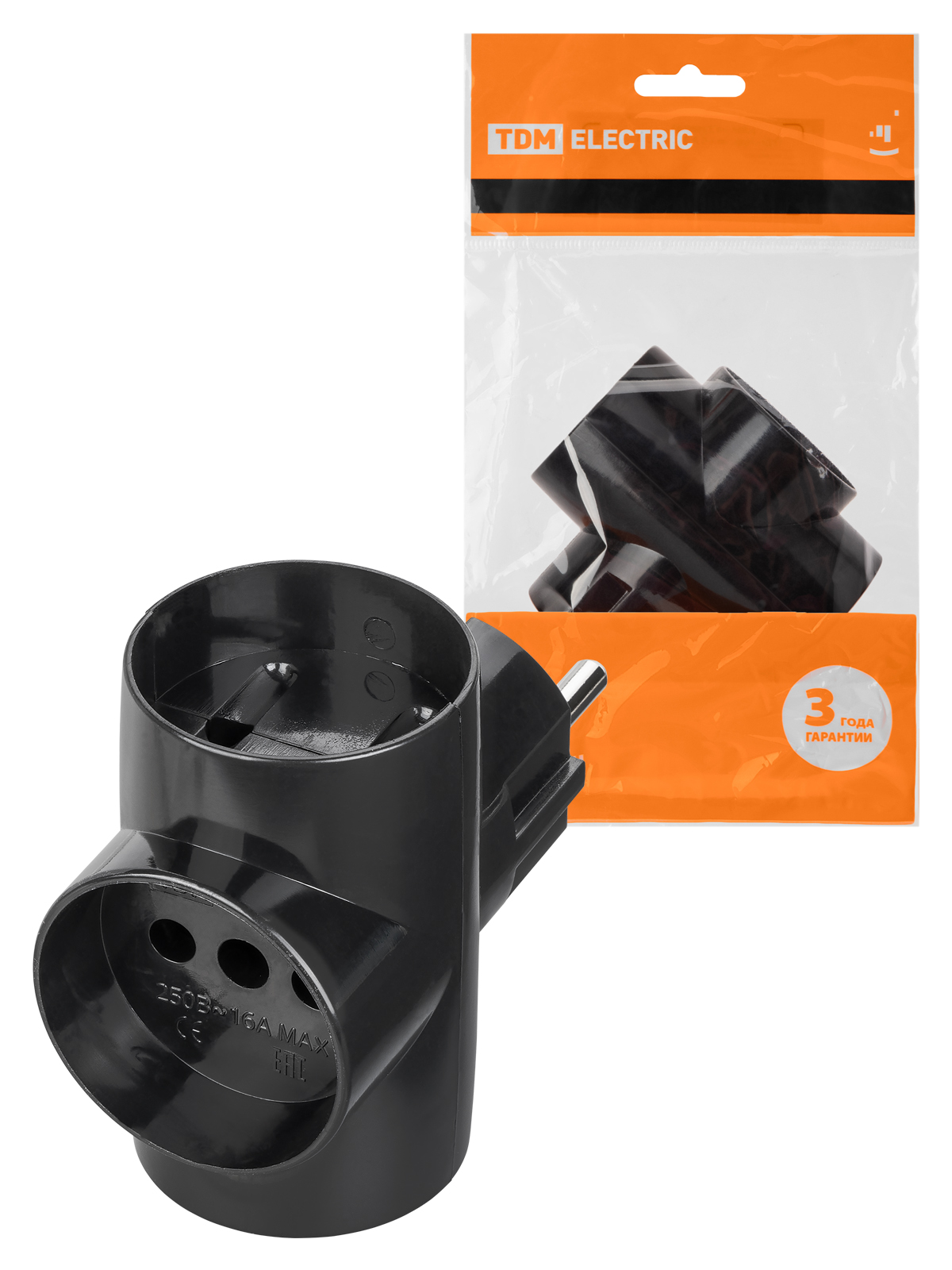 Тройник 3х2П 16А 250B черный TDM - СКЛАД13.РФ