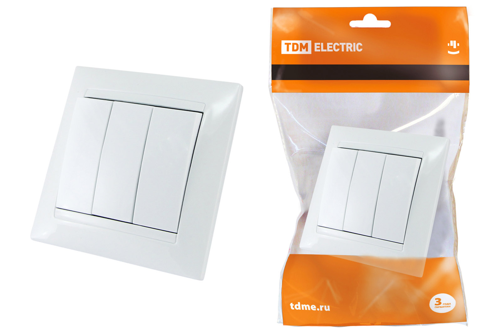 Выключатель 3-х клавишный 10А белый "Лама" TDM