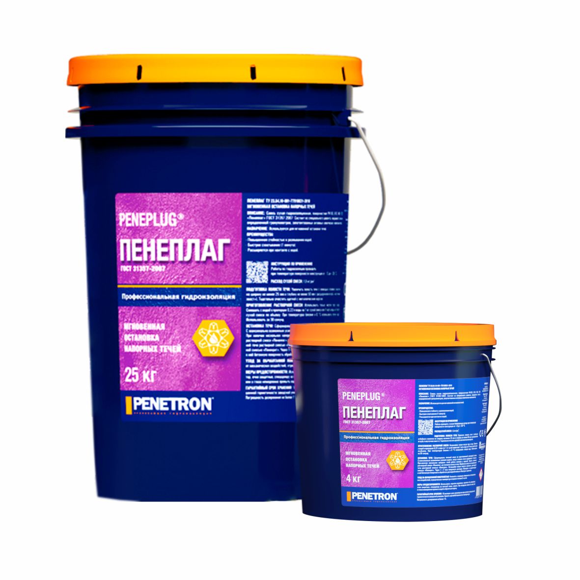 Пенеплаг - смесь сухая гидроизоляционная РК100, B10, W6, F25 «Пенеплаг» ГОСТ 31357-2007. Состоит из специального цемента, кварцевого песка определенной гранулометрии, активных химических компонентов.